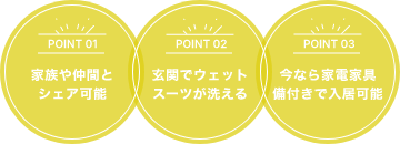 ウェットスーツのまま帰ってきて、ウェットのままお風呂に直行可能! - ● 車中泊が不要になる